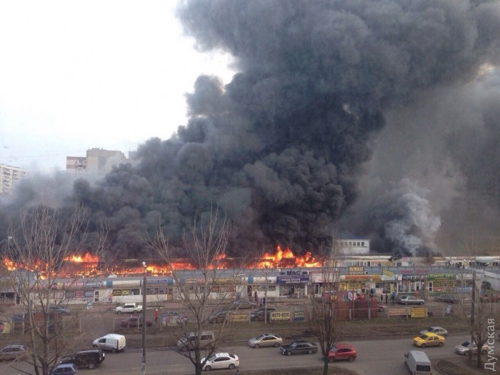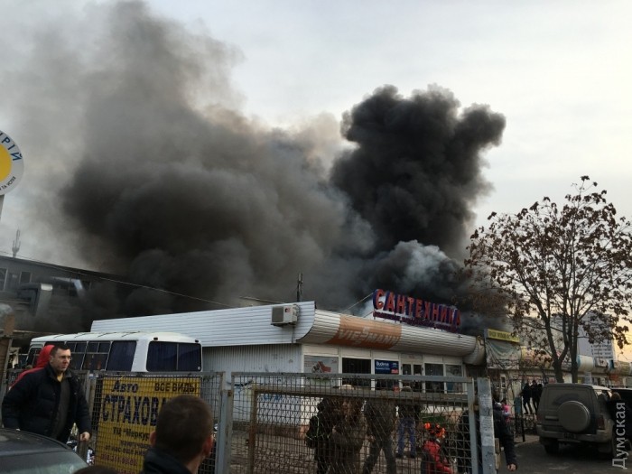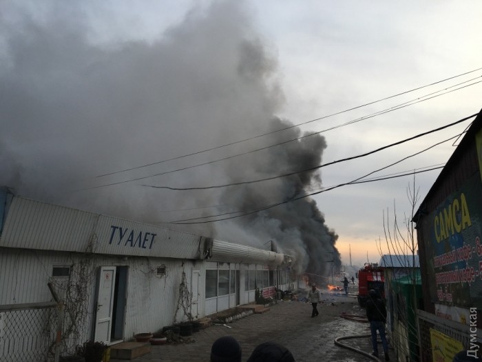 Очередной пожар произошел сегодня в Суворовском районе города. На этот раз загорелся рынок «Меркурий», который находится на Днепропетровской дороге, недалеко от торгового центра «Семья».