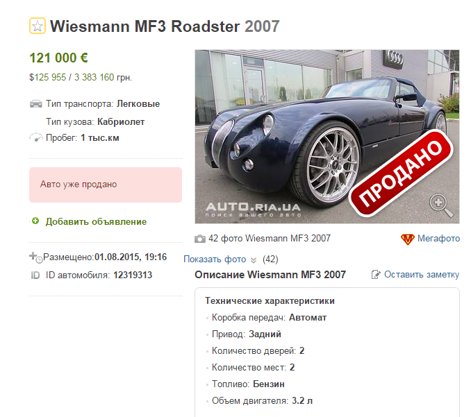 Первое же объявление о продаже такого красавца в Сети дает представление о его стоимости. Сто двадцать тысяч евро!
