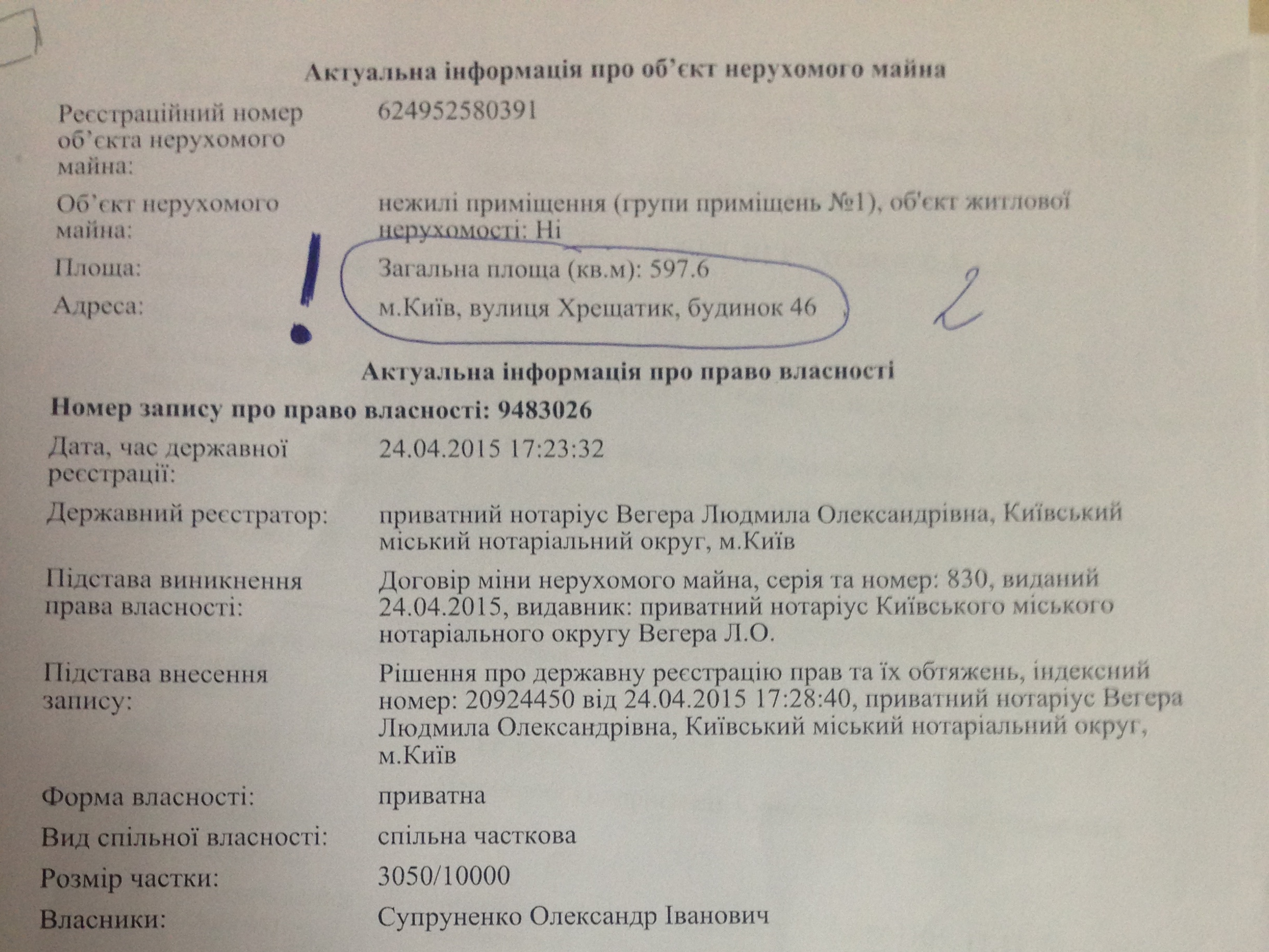 Загадку внезапного обогащения народного депутата открыл недавно открытый реестр недвижимости. В собственности у Супруненко оказалось практически 600 квадратов коммерческой недвижимости на Крещатике, 46.