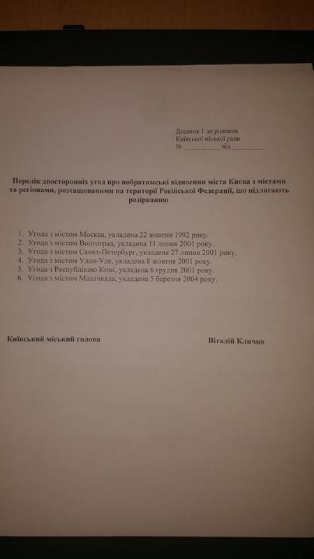 Київ може розірвати відносини з російськими містами-побратимами. ДОКУМЕНТ