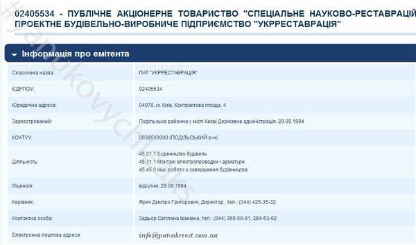 Эту фирму можно связать с Кравцом «географическим» способом. Официальное место прописки фирмы — Бровары, улица Кирова, 90, офис 16. Этот дом — объект БДБК «Меркурий», офис — собственность «Броварской недвижимости» Марины Пелых, жены Кравца.