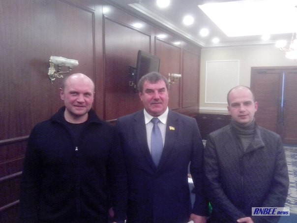 На фото: подельник Кириндясова, антимайдановец и сепаратист Александр Кишенец (крайний слева) и ставленник “авторитета” Гиви Немсадзе, депутат Донецкого облсовета и создатель террористического “Оплота” Александр Бобков (посередине)