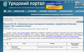 Информация о люстрации Юрия Васькова на Урядовом портале: