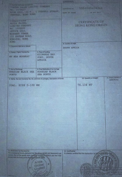 Но на этот раз, по декларации, 76 тысяч тонн угля она купила в Южной Африке, привезла к Черному морю, после чего балкер пошел не в украинский порт, а в российский.
