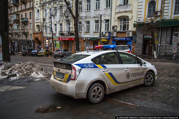 3. Ну а я пока фотографировал их машину. Почти вся патрульная полиция ездит на новеньких гибридных Приусах, доставшихся Украине бесплатно, Япония дала машины для полиции по условиям Киотского протокола.