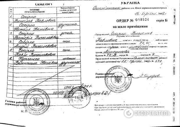 Уже в сентябре 2012 гражданину Сокирко В.П. и его семье из шести человек Соломенской райгосадминистрацией выдан ордер № 018524, серия Б, на жилое помещение по ул. Ломоносова, 73-В, кв. 7, г. Киев, общей площадью 116,6 кв.м.