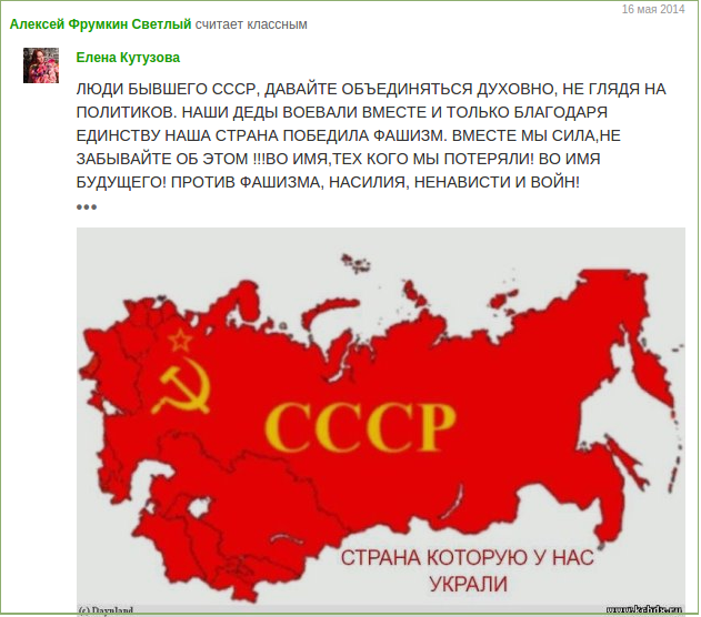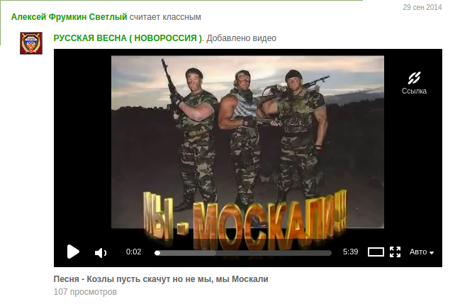 То есть это как раз тот случай, когда 29 сентября 2014 года ты лайкаешь антиукраинское видео "Мы - москали", а 24 октября 2014 года за тобой приходят эти самые москали и забивают тебя плетью до смерти.