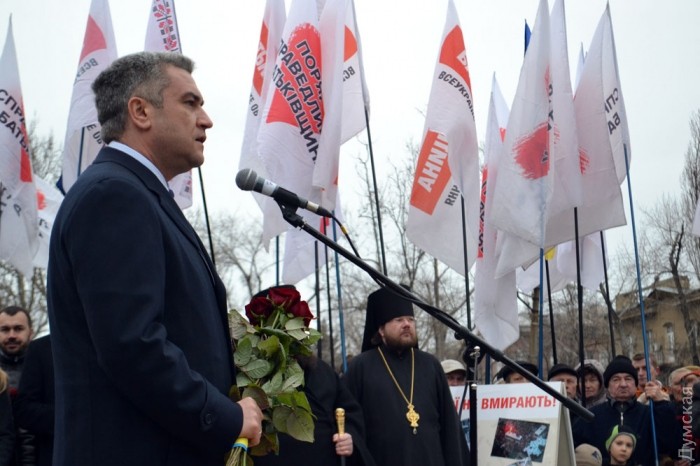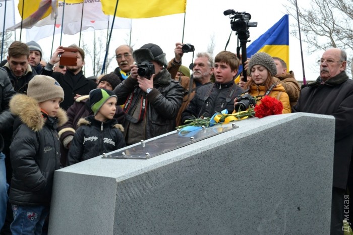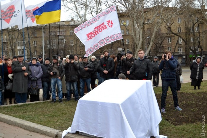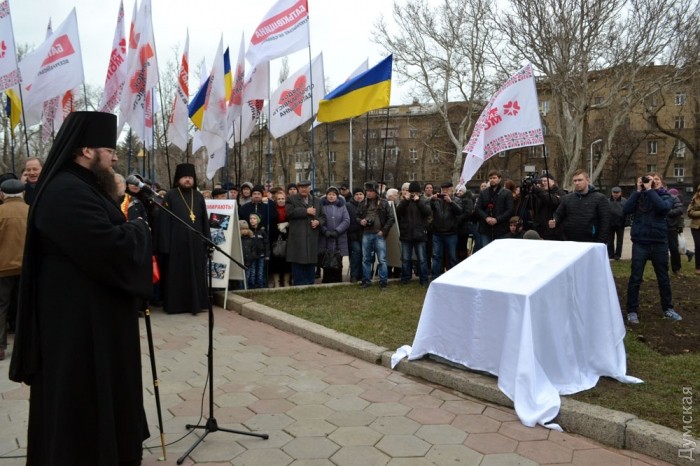 Перед открытием памятного знака слово предоставили председателю Одесского облсовета Анатолию Урбанскому, однако высказать свои соболезнования он не успел, так как «свободовцы» потребовали говорить на украинском языке.