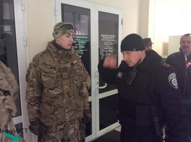 В Черкассах представители Правого сектора (ПС) заблокировали областное отделение Приватбанка, сообщает ІнфоМІСТ.