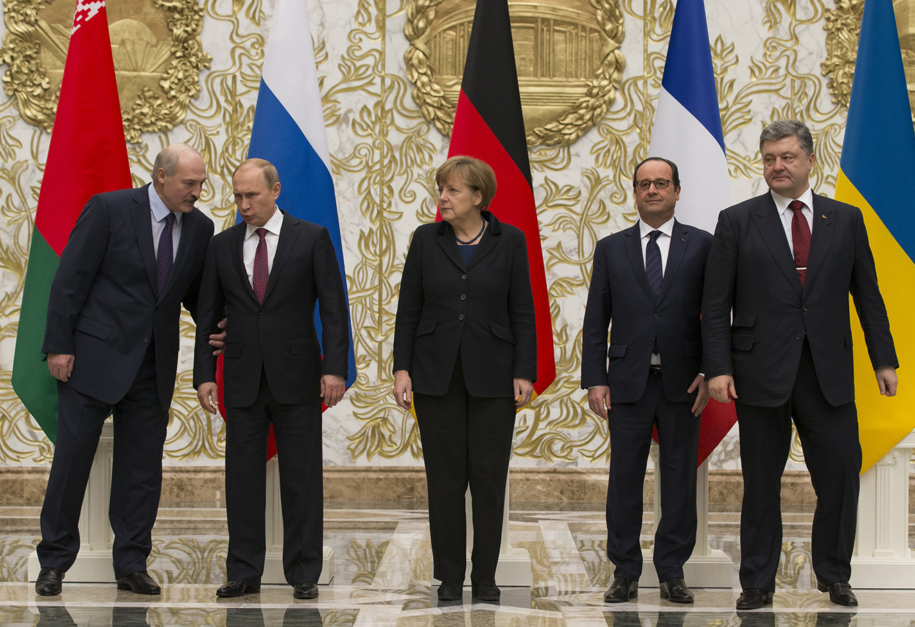 Лидеры России, Украины, Франции и Германии в Минске перед переговорами по мирному урегулированию конфликта на востоке Украины. Фото: Александр Земляниченко / AP / East news
