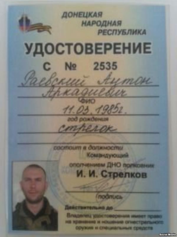 Недавно в социальных сетях и сетевых изданиях появились свидетельства другого "ополченца", Антона Раевского из Орла. Вместе со Стрелковым-Гиркиным он был в Славянcке, быстро дослужился до командира мотострелкового взвода, получил ранение. В украинских СМИ появлялись сообщения о том, что он убит.