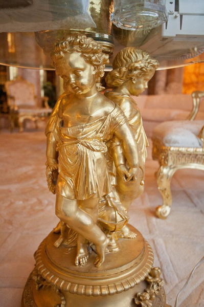 Всё помещение изобилует мрамором и 24-каратным золотом. По мнению Донгия (он известен как "Сен-Лоран мира диванов"), именно так должен выглядеть интерьер "в стиле Людовика XIV". Что ж, возможно.