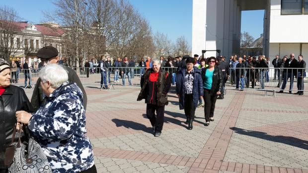 И посмотрите фото из Симферополя, где сегодня толпы людей выстроились за бесплатными пирогами (ели не с лопат) (фото).