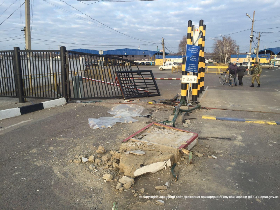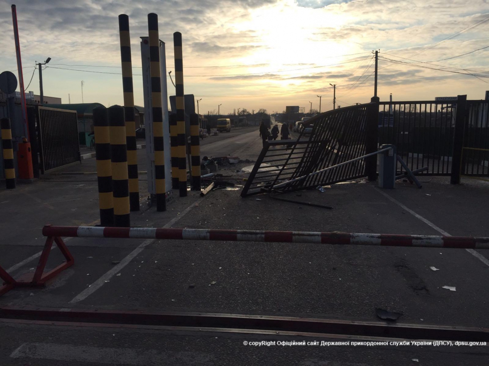 Микроавтобус Mersedes Vito, который двигался со стороны населенного пункта Кучурган, на большой скорости столкнулся с островком безопасности, где находится один из пограничных нарядов во время несения службы, и с въездными воротами пункта пропуска.