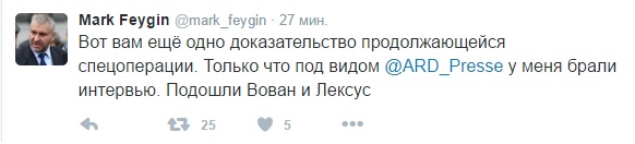 Ранее Фейгин сообщил о попытке снова обмануть его. «Вот вам ещё одно доказательство продолжающейся спецоперации. Только что под видом ARD Presse у меня брали интервью. Подошли Вован и Лексус», – написал Фейгин.