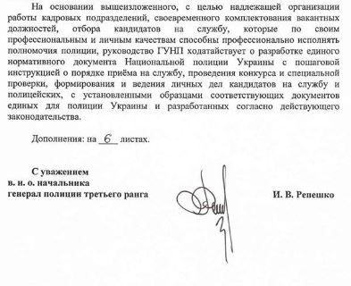 Начальник Главного управления Нацполиции в Днепропетровской области Игорь Репешко написал Хатии Деканоидзе письмо о том, что «руководство обеспокоено растущим некомплектом должностей», — пишет strana.ua