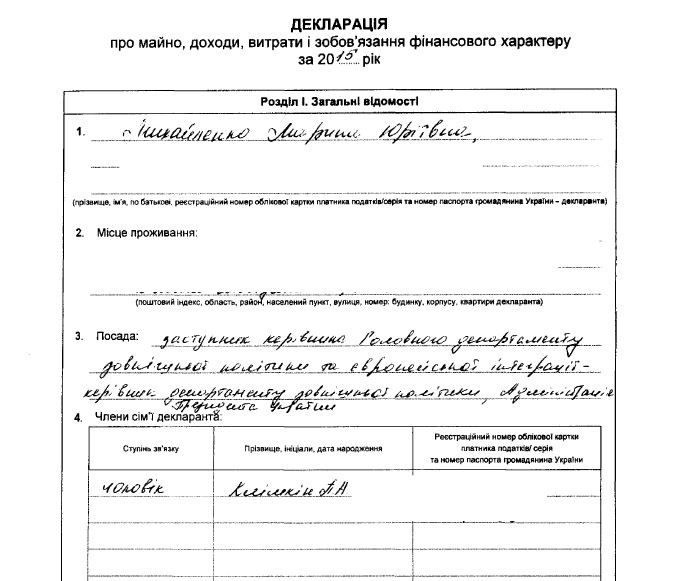 Как удалось выяснить "Стране", на сайте АП есть декларация Марины Михайленко, где она также указывает родство с Павлом Климкиным. У нее есть участок земли 10 соток, машина Volvo S40 и две квартиры. Одной из них она владеет совместно с родителями. По данным из базы прописок жителей Украины, эта "золотая" жилплощадь находится в самом сердце столицы.