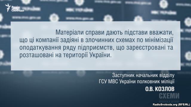 Далі в листі написано дослівно наступне: «Матеріали справи дають підстави вважати, що ці компанії задіяні в злочинних схемах по мінімізації оподаткування низки підприємств, що зареєстровані та розташовані на території України». Лист підписав заступник начальника відділу ГСУ МВС України полковник міліції О. В. Козлов.