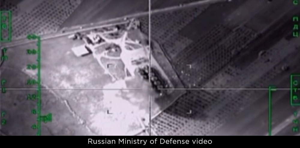 Когда начались удары, начальник управления по связям с общественностью и СМИ Министерства обороны Российской Федерации генерал-майор Игорь Конашенков рассказал СМИ: «В соответствии с решением Верховного главнокомандующего Вооруженными силами РФ Владимира Путина самолеты российских Воздушно-космических сил сегодня приступили к проведению воздушной операции с нанесением точечных ударов по наземным целям террористов группировки ИГИЛ на территории Сирийской Арабской Республики». Министр иностранных дел Сергей Лавров дал совет американским репортерам: «Все уже было сказано Минобороны РФ, не слушайте заявления Пентагона о наших авиаударах».