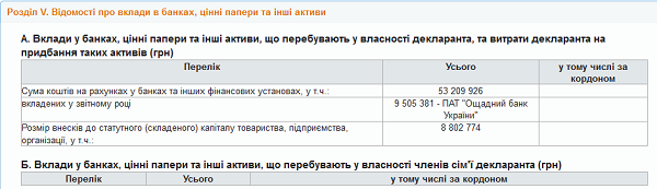 Згідно з документом, заробітна плата нардепа із загальної суми доходів склала 64,5 тис. грн (близько 5,4 тис грн на місяць), дивіденди та проценти - майже 1,7 млн грн, дохід від передачі в оренду (строкове володіння та/або користування) майна - 6,9 млн грн.