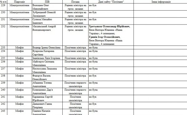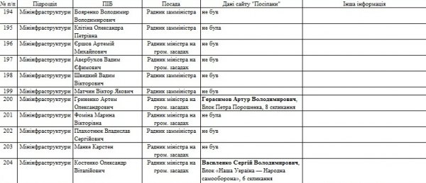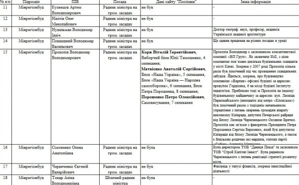Повторю еще раз, практически у всех министров похожая ситуация. Это не "наезд" на министра инфраструктуры, это системная проблема. Наличие именно "партийных" советников откровенно напрягает и наводит на нехорошие мысли. Впрочем, беспартийные помощники могут быть не менее вредны, чем партийные. Но возможностей навести справки о каждом у меня нет. Поэтому я решил опубликовать полный список помощников. Эта информация может быть полезна для журналистов-расследователей и антикоррупционных органов.