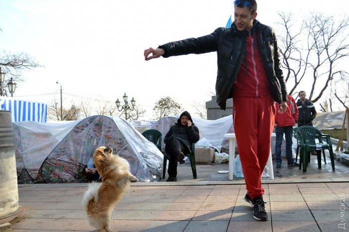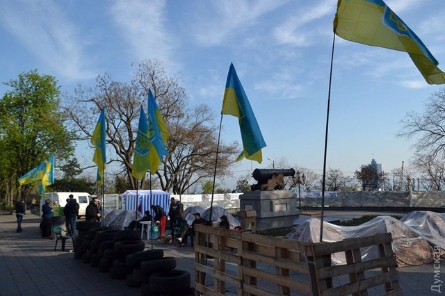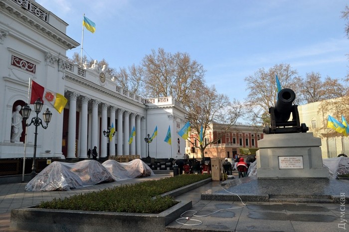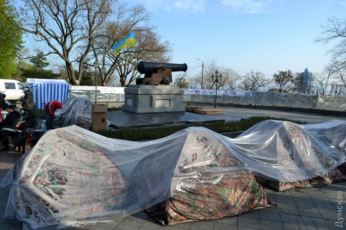 На Думской площади, у здания Одесского горсовета, вырос палаточный городок.