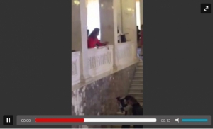 У кадрі дівчина в червоному з балкона махає стрічкою, її знімає на камеру молода людина. Користувачі в коментарях дивуються ситуації і висувають припущення, що б це могло означати.