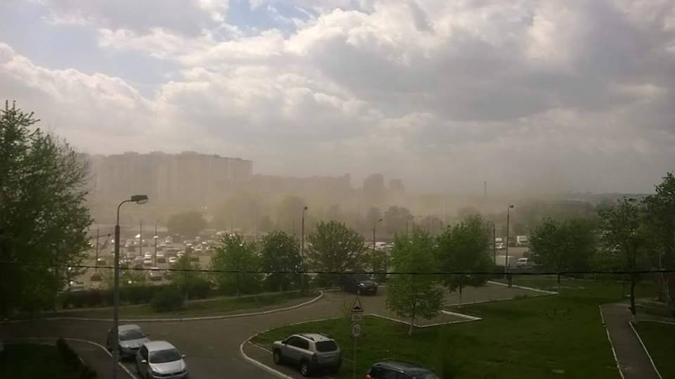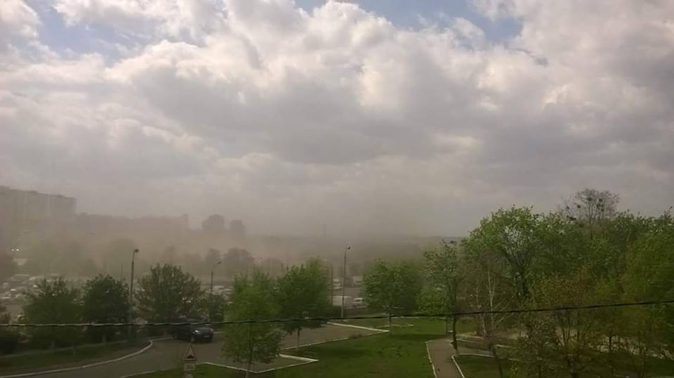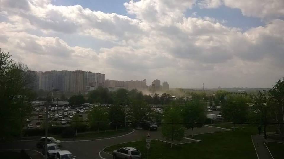 В Киеве в Дарницком районе над районом возле озера Солнечное наблюдаются большие облака пыли неизвестного происхождения.