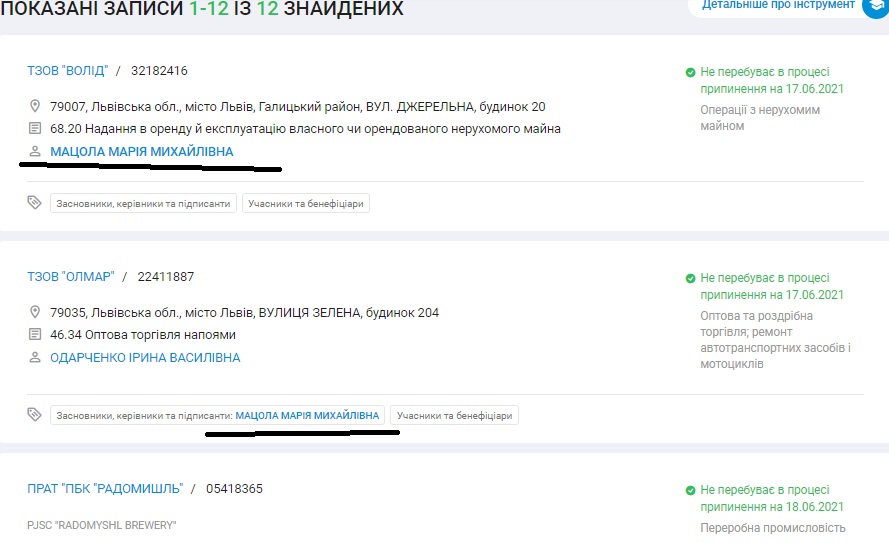 Or she is a businesswoman: at the moment when Mariya Matsola was managing, according to registry data, this village outpatient clinic, she was at the same time engaged in business, moreover, quite successfully. In one way or another, she is listed as being involved in at least 12 business structures: