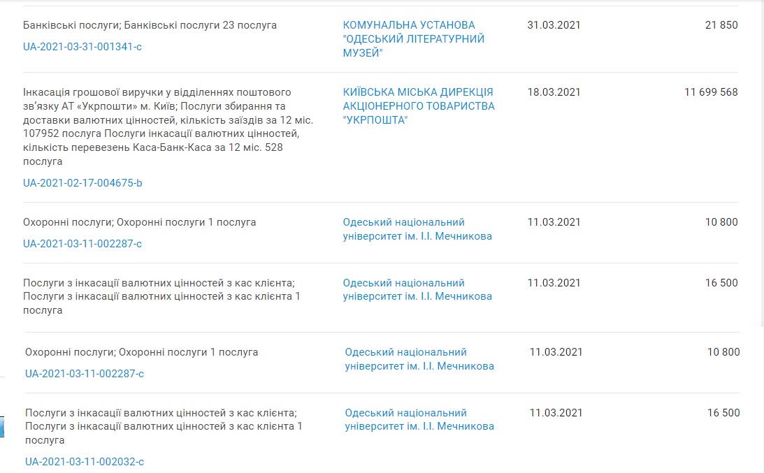 Mainly these are cash collection services for "Ukrposhta" branches. Not only in Odesa but in other regions as well. But there are other state enterprises, among which there are surprisingly many located in Odesa: