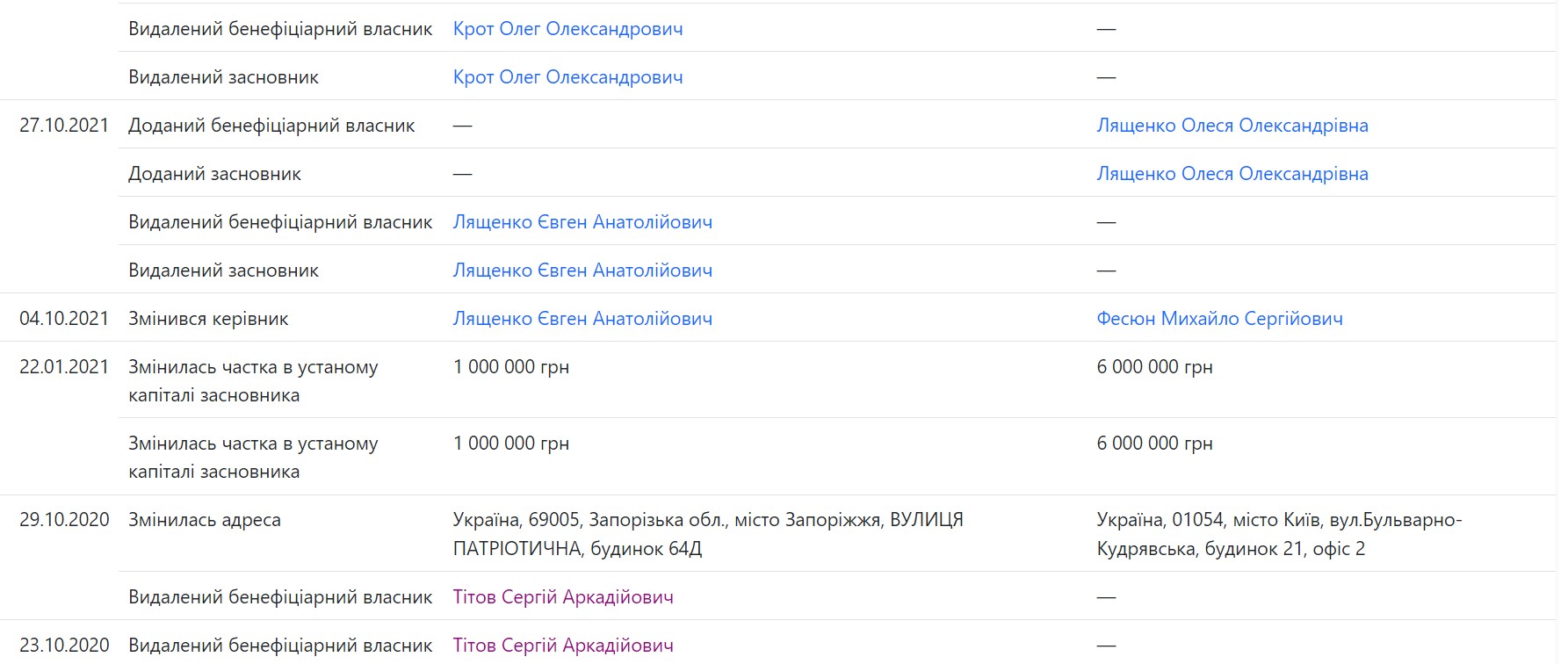 And Yevhen Lyashchenko, who became the "owner" of Dinaline Construction instead of Titov, recently became a member of the board of Ukrzaliznytsia.