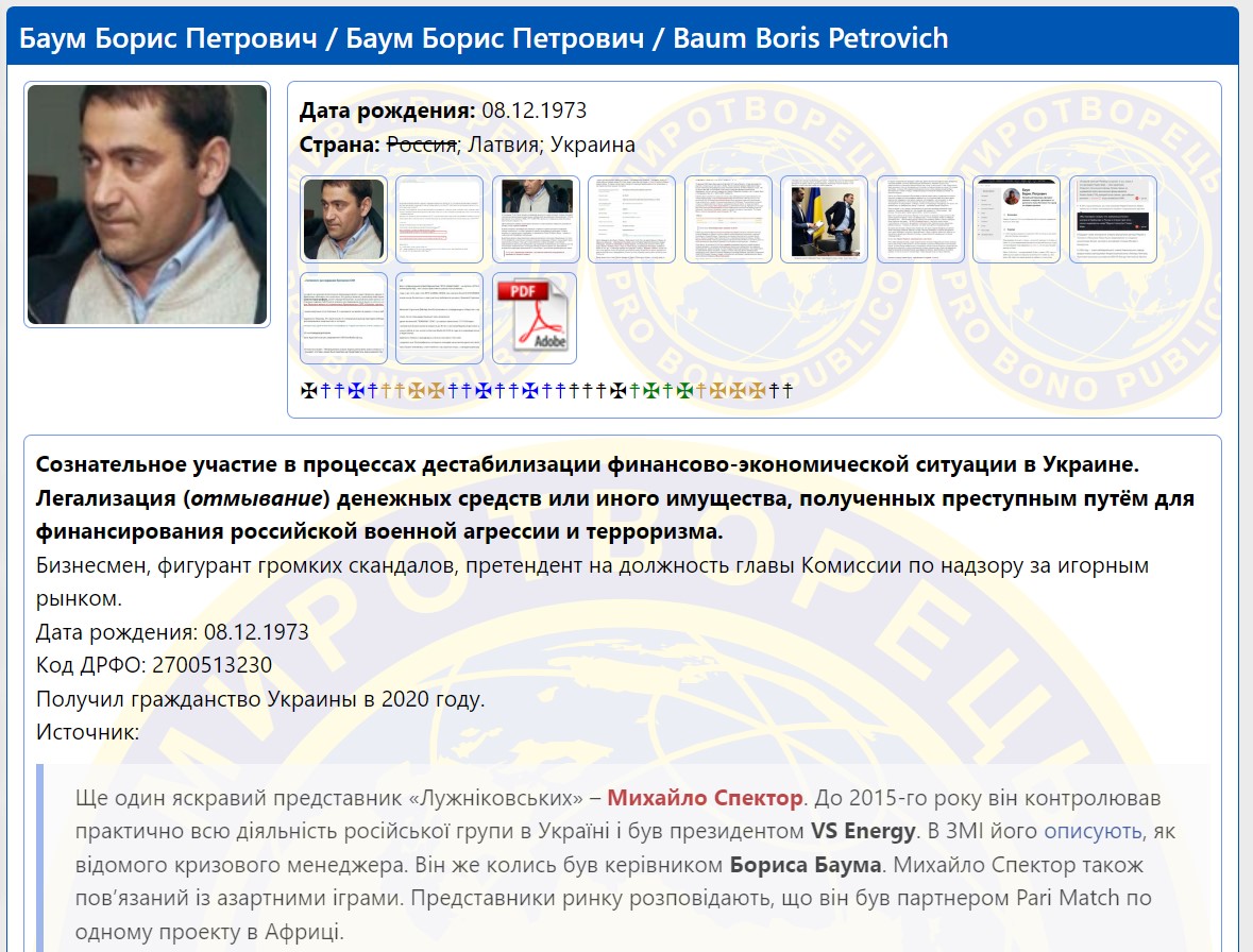 Who Borys Baum is and about his connections with Russian organized crime and the vice-speaker of the State Duma of the Russian Federation Aleksandr Babakov, also needs no explanation. For those who don’t know, we send them to “Myrotvorets”.