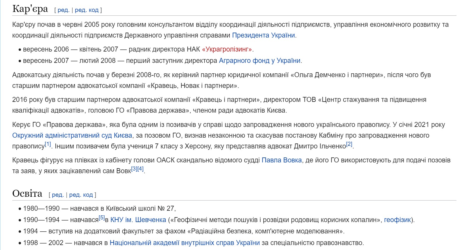 Kravets became most famous for his lawsuit against the new rules of the Ukrainian language. It was formally filed by a seventh-grader from Kherson, but everyone understood that the teenager was just a screen for someone else. This other person was Rostyslav Kravets’s NGO "Lawful State", which had previously been noticed in the open service of Pavlo Vovk.