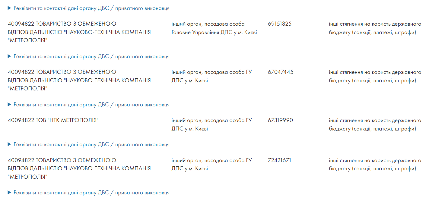 In particular, STC “Metropolia” owes the state budget more than 3 million UAH. Currently, tax authorities are attempting to recover these funds through enforcement proceedings.