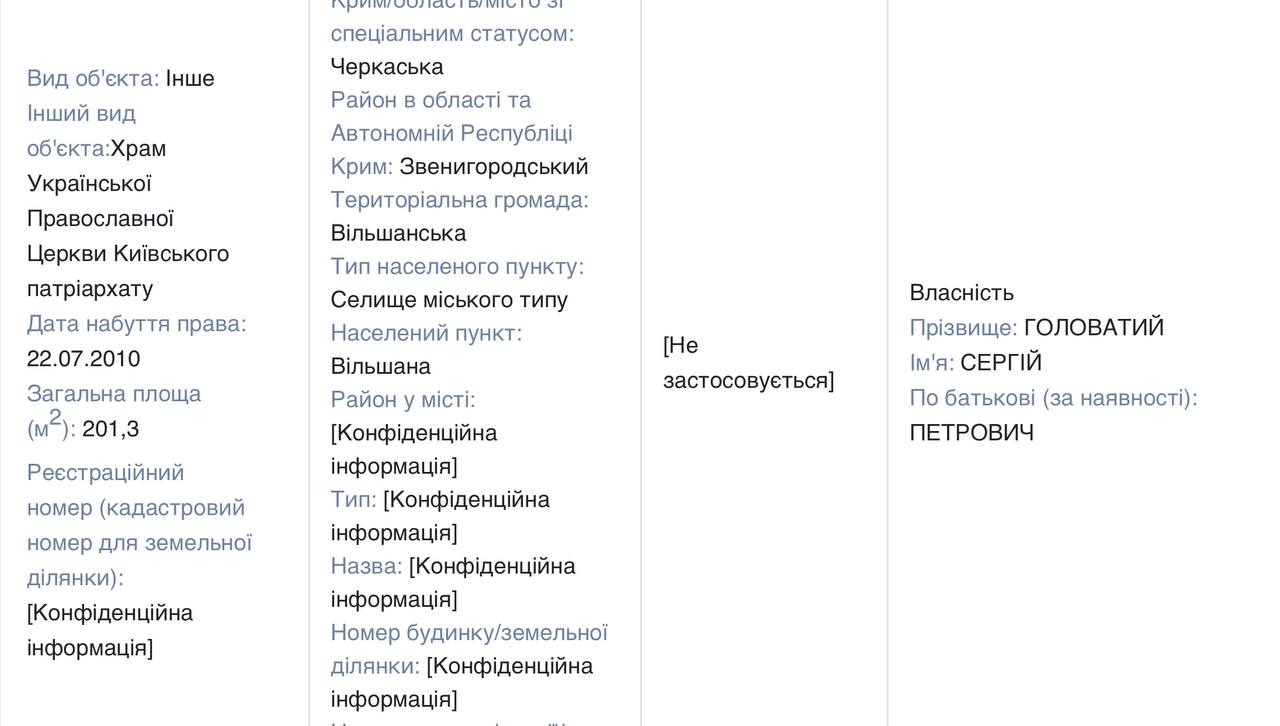Golovaty acquired most of his property, including his own church, between 2007 and 2012, when he was a member of the Ukrainian parliament elected from the "Party of Regions".