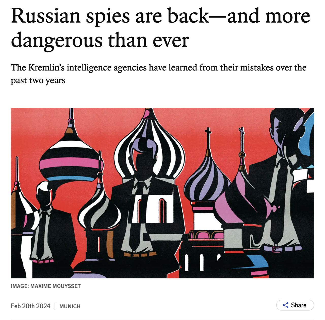 The Economist writes that Russian spies have returned to Europe and have become “more dangerous than ever.”