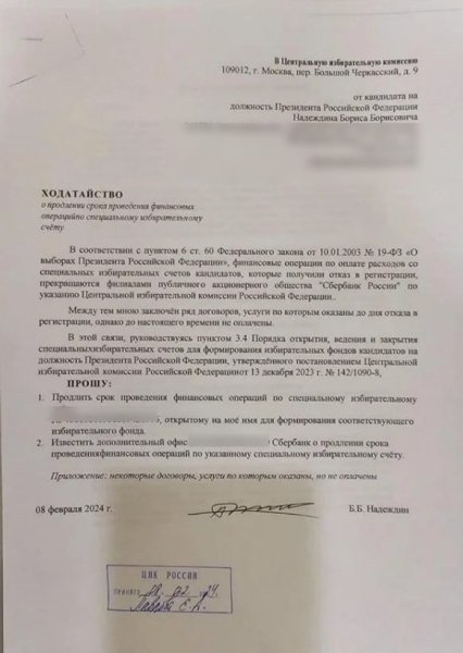 Українські хакери отримали доступ до листування Бориса Надєждіна та члена ЦВК РФ Миколи Левичева, із яким опозиціонер активно контактував. Зокрема, він розвʼязував із ним особисті й політичні питання, а саме після відмови в реєстрації як кандидата в президенти. Це може свідчити про ознаки "фіктивного кандидата в президенти".