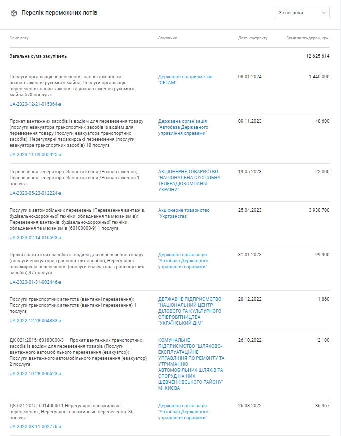 Despite the criminal trail, Express-T wins tenders worth tens of millions of hryvnia. Including, provides services for the State Administration of Affairs