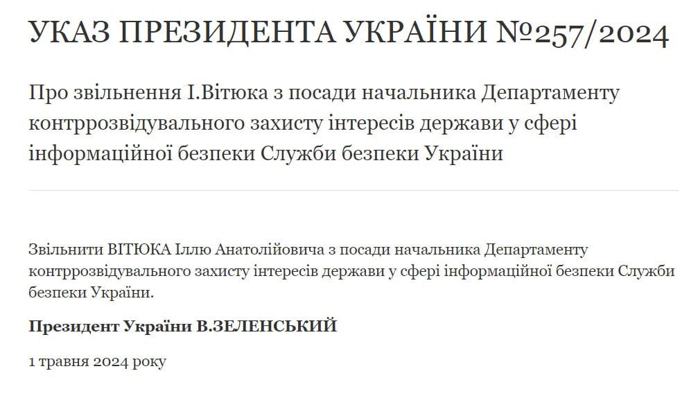 Topics: Illya VityukFiredSSUVolodymyr Zelenskyy