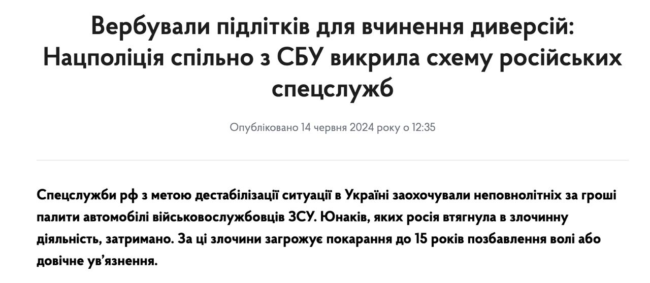 Arsons of military vehicles carried out by teenagers recruited by Russia on the Internet for money