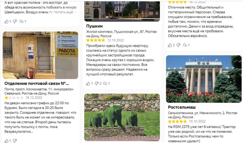 With the beginning of the Russian occupation of Kherson region, Ihor Bulyuk disappears from the public sphere. However, from the reviews he leaves on his page in the service reviews.yandex.ru, we can conclude that since May 2022, he has been regularly staying in Rostov-on-Don for more than a year, visiting restaurants, music clubs, stores, hotels, and leaving reviews. He writes several times about visiting parks “with the whole family”, and in October 2022, he reports about buying a “future apartment” in the residential complex “Pushkin” in Rostov-on-Don. In August 2023, we see typical tourist reviews from Sochi, and then again from Rostov.