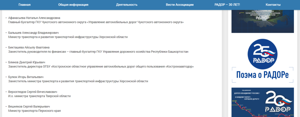 The trail of Ihor Bulyuk unexpectedly appears in May this year on the RADOR website – the Russian association of territorial road management bodies. They have a tradition at the beginning of each month to congratulate colleagues from the regions of Russia, and now from the occupied Ukrainian territories, on their birthdays. Thus, in the list of May birthday celebrants, we saw Ihor Bulyuk, with the indicated position – “Deputy Minister of Transport and Transport Infrastructure Development of Kherson region”.