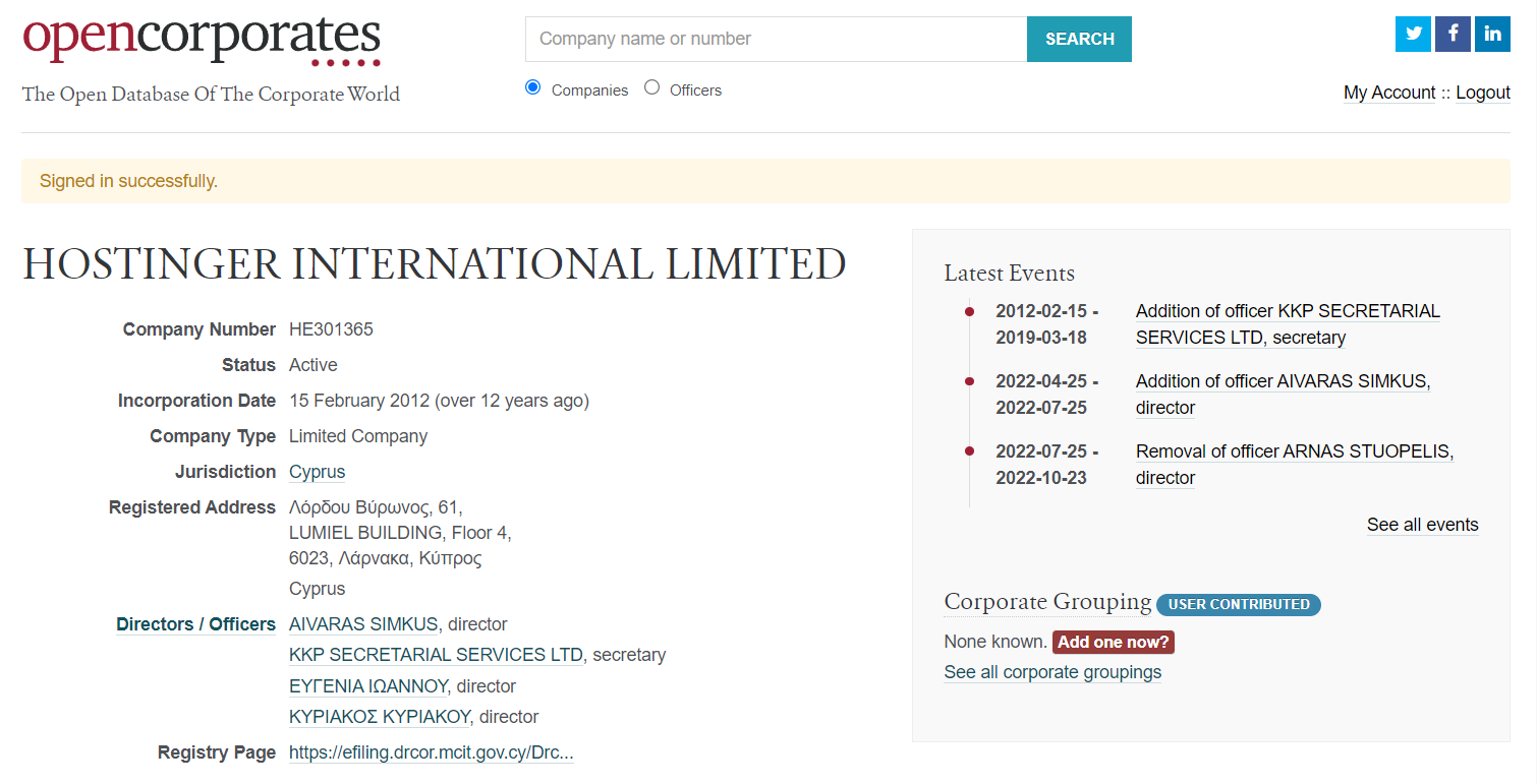 In 2012, Hostinger International Ltd was registered in Cyprus, which is managed directly by the director of Hostinger, Aivaras Simkus, and another Cypriot offshore company, KKP secretarial services LTD. That is, for the last 12 years the provider has been operating finances in a tax-free zone.