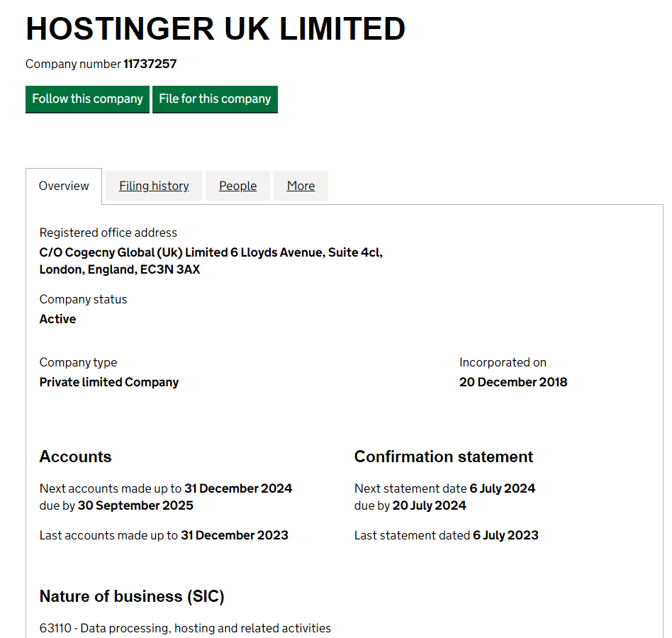 Cyprus is not the only offshore where Hostinger hid its financial activities. In the London company registers you can find the company Hostinger UK limited, created in December 2018.