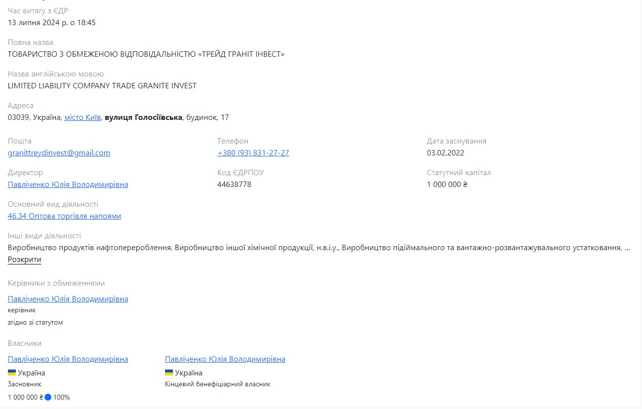 And it was easy to guess what happened immediately after the publication - the press published materials that clearly showed the connection between Trade Granite Invest LLC and the Adamovski family. The beneficiary is a certain Yuliya Pavlichenko: