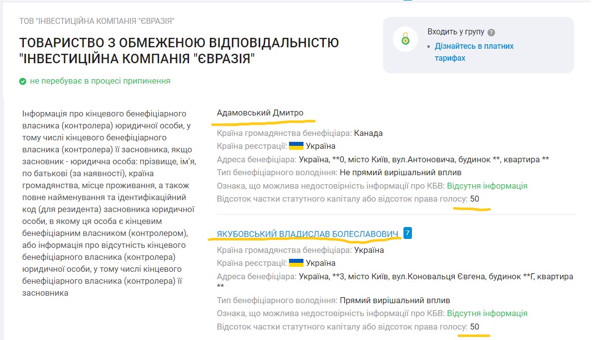 Director Vladyslav Yakubovskyi, who was involved in the criminal case against Trade Commodity together with Andriy Adamovskyi. The same Yakubovskyi and Dmytro Adamovskyi, who own the fund in equal shares, are hiding behind Eurasia Investment Company LLC:
