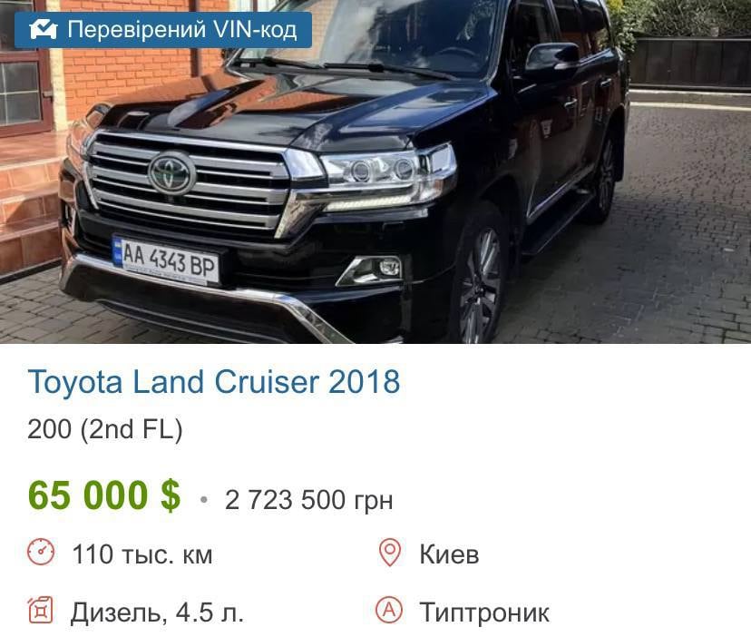 The car Toyota LC 200 worth 65,000 thousand dollars, which the spouses use, was not included in the declaration.