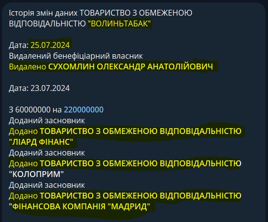 According to the registers, from 07.25, the owners of "Volyntabak" are:
