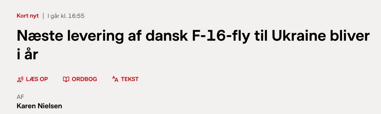 The number of aircraft to be delivered was not specified. In total, Denmark has promised to send 19 fighter jets.