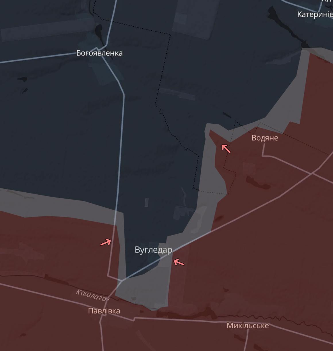 According to the Deep State map data, Russian troops are moving towards Bohoyavlenka from the direction of Vodyane.
